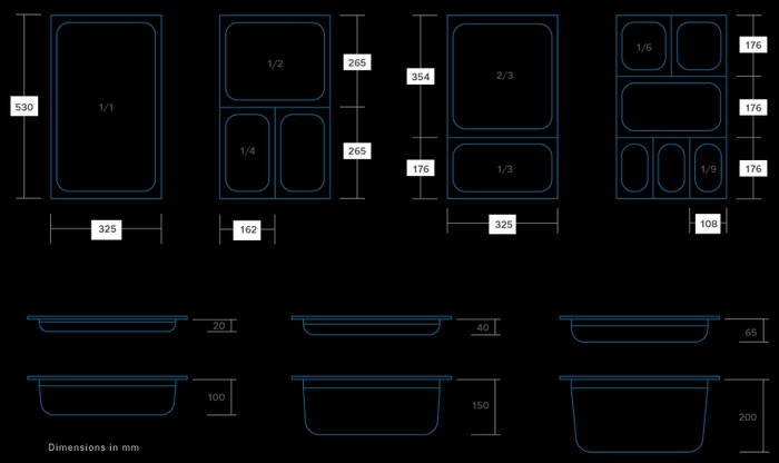 - Sobib GN-nõudele sügavusega kuni 65mm