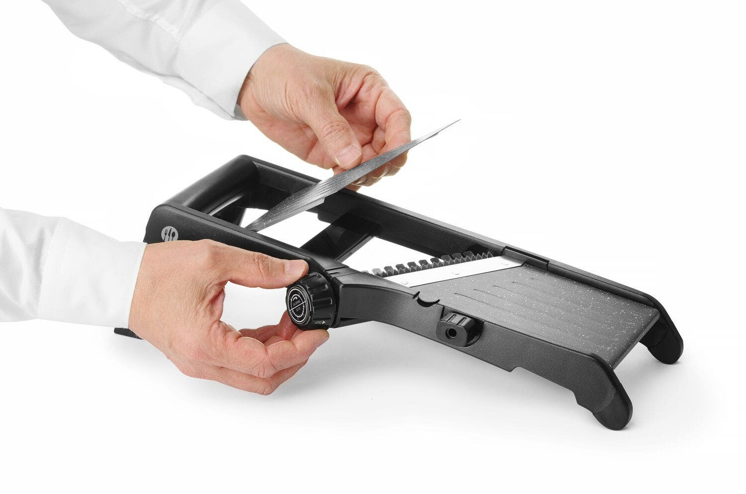 Lõikepaksust saab määrata vahemikus 0,5 kuni 9 mm. Integreeritud teradega 3 mm julienne’i ja 13 mm paksuse friikartuli jaoks.