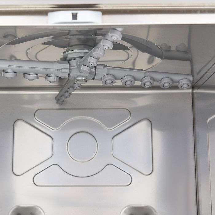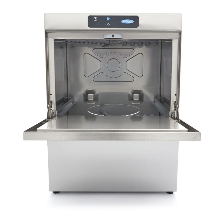 Nõudepesumasin 50×50 – manuaalne juhtimine tühjenduspumbaga ja puhastusvahendi pumbaga, 400V/6600W, 600x570x(H)830mm